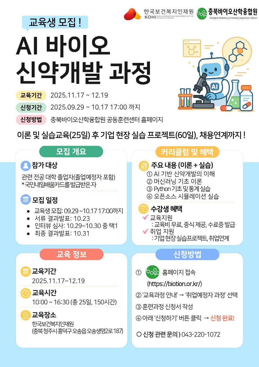 | [교육안내 ]충북바이오산학융합원 AI바이오 신약개발 과정 | |
